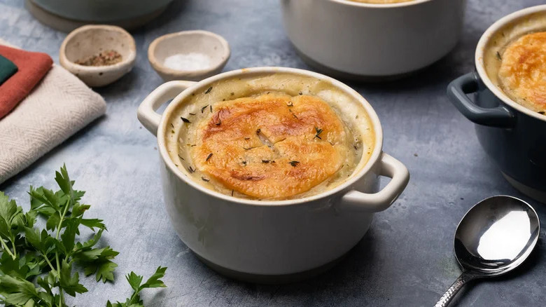 Beans are a great vegetarian protein substitute in so many meals, and here they take the place of chicken or beef in the original one pot meal. This is a quick and easy version of the homey, classic pot pie, using premade puff pastry and ramekins to produce single serving meals in under an hour. The filling is a simple but hearty stew mixture of chopped vegetables, kale, and canned white beans, which only need to be simmered together for a few minutes to meld all of the flavors. A little pastry topper and short bake later, you'll have a bubbling filling and a crispy golden crust.