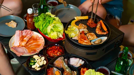 For chef Jae Lee, Korean barbecue is best paired with a light and refreshing beer. "It doesn't have to be a Korean beer, anything light will go," says Lee. For him, the pick keeps the meal from getting too heavy. "At the end of the day, you're eating rich beef or pork or meat; you need something light and bubbly to kind of balance that so you can keep eating," he elaborates. While the chef personally prefers a non-alcoholic brew, he maintains that anything light and crisp works.