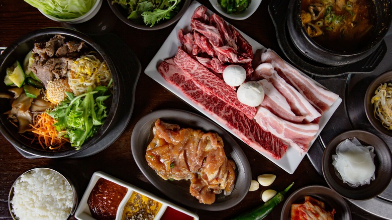 When you think of Korean barbecue, however, your mind may go to soju, a Korean liquor distilled from rice. While it does make a good pairing, Danny Kim, the creator behind Danny Grubs, cosigns on Lee's recommendation of a light beer, and suggests mixing it with soju to create a popular cocktail called somaek. "You just go with soju and whatever light beer, and that's usually what Koreans will drink around the Korean barbecue," he notes. To create a balanced cocktail with soju, you'll typically want a ratio of 30% soju and 70% beer.