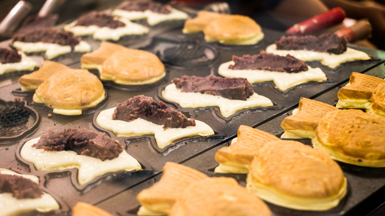As for its texture, taiyaki's bread feels crisp on the outside and chewy on the inside. The batter is often compared to that of a waffle. For fillings, the most classic option is red bean paste, which is mildly sweet. Shops have expanded to include other flavors like chocolate, matcha, black sesame, and more. Taiyaki has also evolved quite a bit over time, with some shops using the fish molds to make taiyaki that holds ice cream.