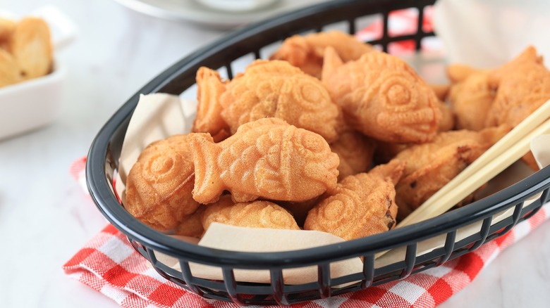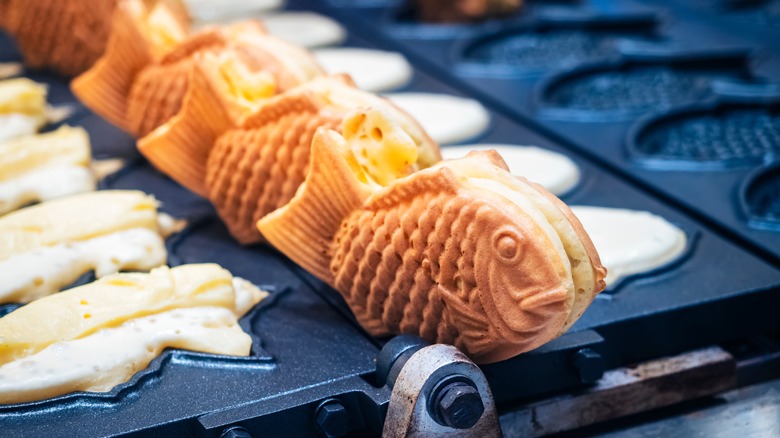 Taiyaki is a Japanese dessert commonly found at festivals and street food stands. There are also some shops and cafes that specialize in making taiyaki. The name directly translates to "baked sea bream". However, the name is also deceptive as the snack contains no actual fish in it. Instead, the name refers to the shape of the bread, which is specifically meant to be a sea bream. The bread is not only shaped in the silhouette of a fish but also features scales, fins, and details on the tail and face.