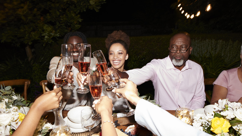 For celebratory occasions, it is understandably reasonable that you may want to start pouring, toasting, and drinking as soon as possible, yet when it comes to matters of Champagne (and the heart), timing is everything. Though grab-and-go drink stations can help keep friends and family plied with booze and teetotaling beverages before lengthy speeches begin, you may want to hold off on batch-pouring glasses of bubbles. Lauren Chambers, founder and owner of Direct My Day, told Tasting Table why happy couples should press pause on popping open bottles of anything carbonated before toasts are ready to take place.
