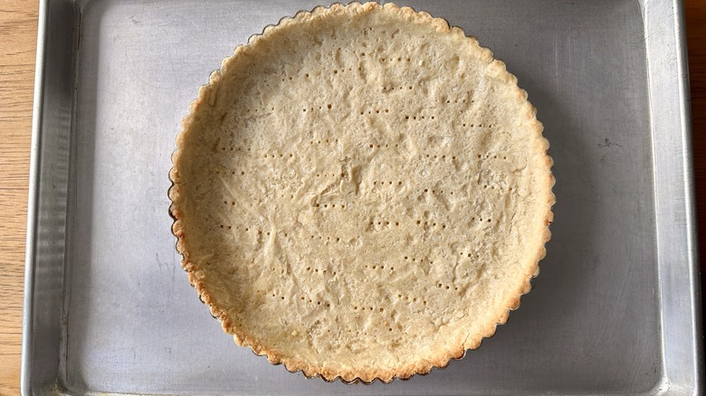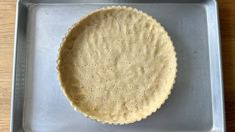 - Prick all over the bottom of the tart with a fork and refrigerate for at least 30 minutes, or until firm.