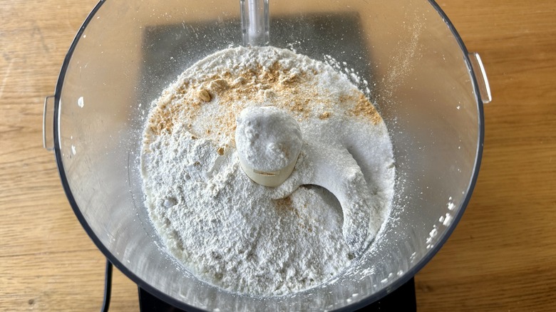 - Add the flour, sugar, salt, and ginger, and pulse lightly to combine.