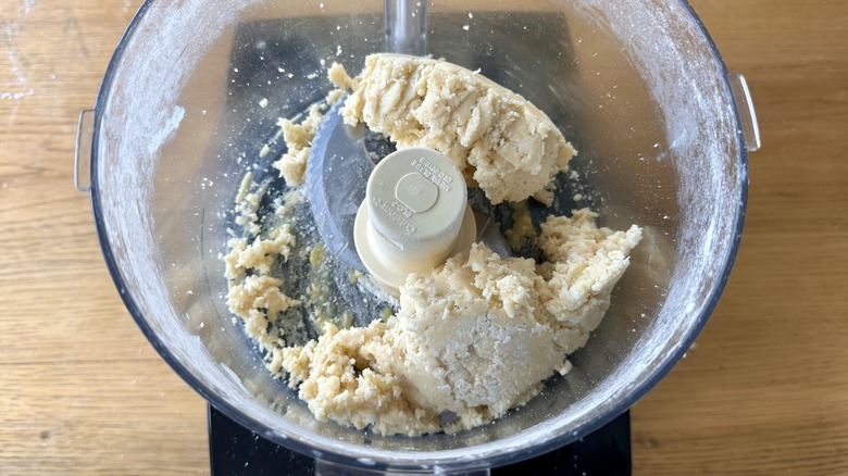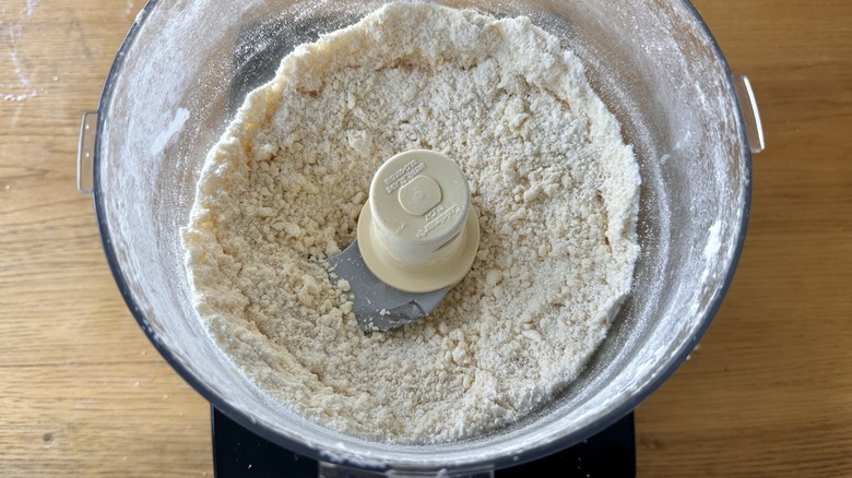 - Add the butter and pulse until only pea-sized bits remain visible.