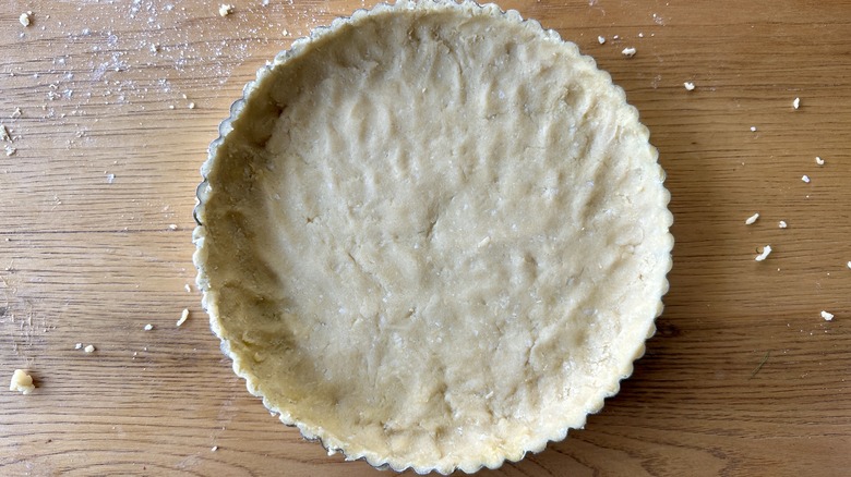 - Press the dough evenly up the sides and into the bottom of the tart pan.