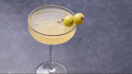 Tanghulu can take the classic fruit garnish and up the ante on everything from flavor to Instagram-ability. Originally a Northern Chinese treat since around 960 A.D., tanghulu is fruit coated in a sugar syrup that creates a candy shell. This was traditionally done with hawthorn berries, but now you can pretty much use any fruit that has skin or isn't too juicy so the syrup doesn't just melt. These skewers present fruit-like glossy jewels, making for a striking finishing touch to any drink and they also bring the characteristic of crunch plus bold flavor.