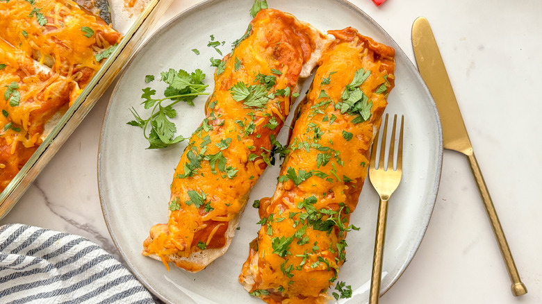 Top with the remaining enchilada sauce and cheese. Bake for 20 minutes.
