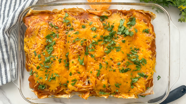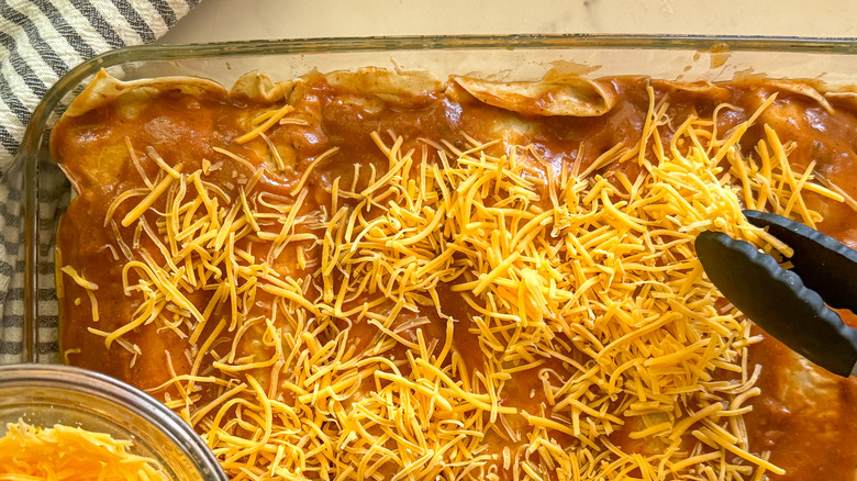 - Top with the remaining enchilada sauce and cheese. Bake for 20 minutes.