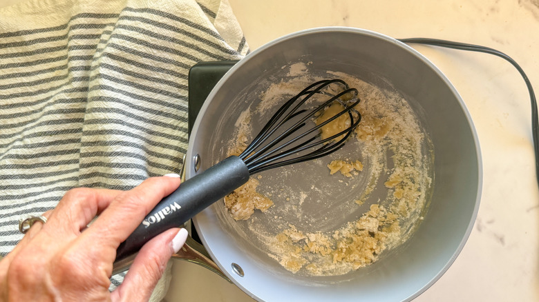 While that is cooking, make the enchilada sauce by adding the oil to a small pot and bringing the heat to medium.