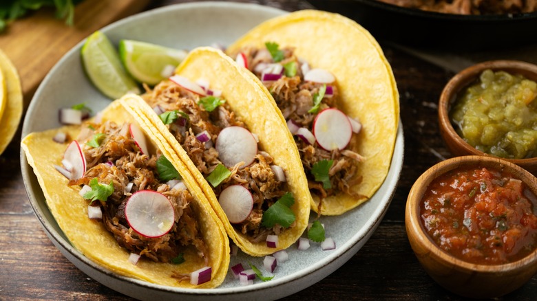 Although the preparation is usually straightforward, some famous chefs like Rick Bayless and Enrique Olvera choose to add things like evaporated or condensed milk, or even Coca-Cola, to burn and caramelize the fat to add even more flavor and texture to the pork. If you want to make them at home and see why Vice President Kamala Harris loves them so much, you can easily make them with this slow-cooker carnitas recipe. And you can go a step further and make your own corn tortillas from scratch for an extra traditional touch.