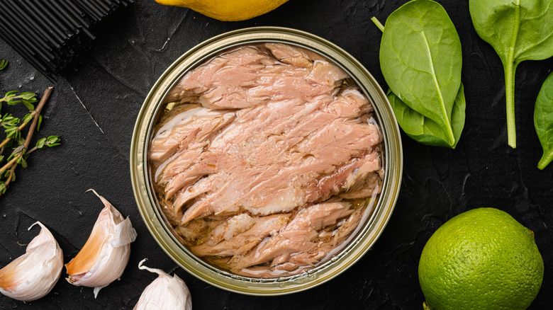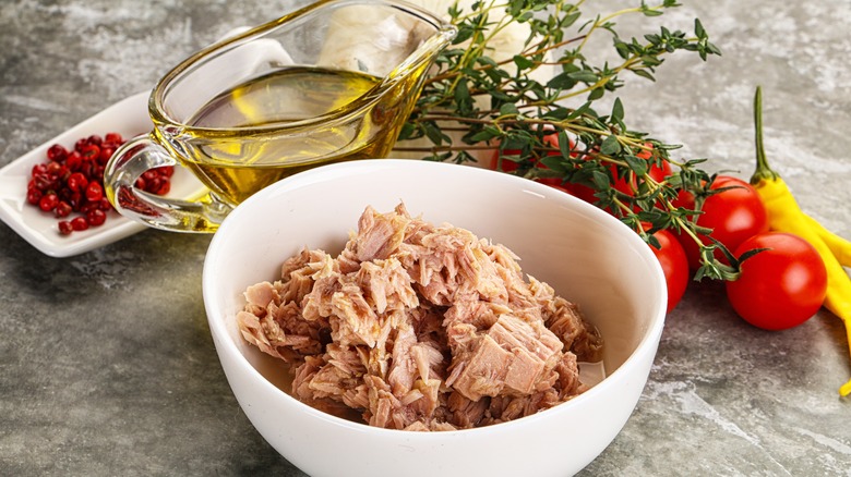 Water-packed canned tuna generally has a more pronounced tuna flavor since it doesn't have to compete with oil on your tastebuds. If a recipe for tuna has a lot of additional seasonings, water-packed is a good choice because it's more of a blank canvas. Some of the absolute best additions to canned tuna are mayonnaise, fresh herbs, acids like vinegar, lemon, or hot sauce, as well as mustard and even pickles. If you're making tuna salad, water-based allows you more room to play around with adding your own fats like mayonnaise, ripe avocado, or olive oil.