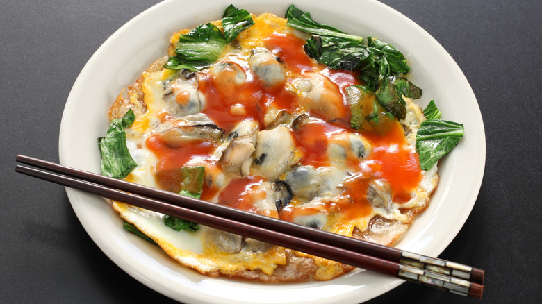 Simplicity goes hand in hand with endless versatility when it comes to omelets. With just a quick peek into different cuisines, you can easily find many variations of this breakfast staple, paired with a diverse array of fillings. Almost anything works, so don't be too surprised to learn that even oysters can be added. In fact, this combination is incredibly popular in Taiwan, where it often graces night markets as a beloved street food called o-a-tsian. Of course, that's not the only place it belongs. Right in the comfort of your kitchen, the Taiwanese oyster omelet can also be adapted to your regular omelet recipe, especially if you've got canned oysters already sitting in the pantry.