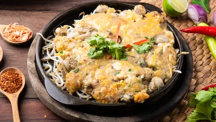 Over the blank canvas of the mildly savory, buttery eggs, the oyster's umami taste is a unique, outstanding touch. The briny notes add a special richness to the dish, one that you don't normally find in omelets. Then there are also the herby hints from sprinkles of cilantro, green onion, or scallions. Leafy greens and other veggies that you typically use for omelets would work as well, imparting pops of earthy sweetness. As these different notes come together, they create a flavor profile that boasts the seafood depth of oysters, balanced by the wholesome, familiar eggs.