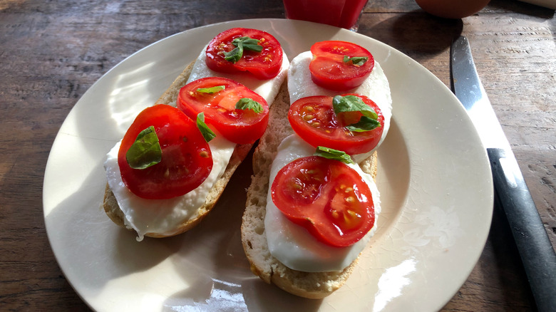 Originally used to describe red tomatoes, the term beefsteak is now applied to a handful of varieties in all colors. You'll find heirloom yellow tomatoes, pinks, greens, stripes, and dark blackish-red hues, as well as the traditional red globes you see at your favorite hamburger joint. When you cut open a beefsteak, no matter what color, you should expect to get a beautiful presentation slice, whether you want to layer it in a sandwich or make a platter with basil and burrata cheese. But note that every individual tomato variety has its particular flavor profile — some more acid, some sweeter, some mild, and some intense. So you'll want to know more about the specific tomato.