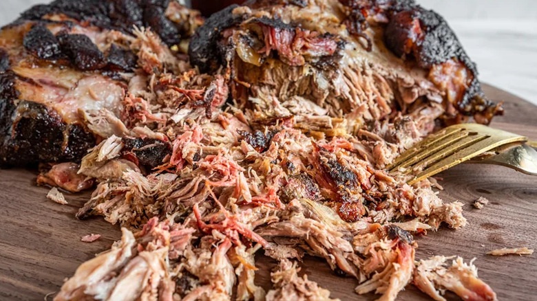 The right seasoning can often make or break a good piece of slow-cooked meat, and it's no different with pulled pork. Because it cooks for hours, people often use an oil, sauce, or liquid-based marinade for their piece of pork. While you might consider turning to a BBQ sauce, I recommend using a dry rub — which is the unsung hero of delicious pulled pork. Dry seasonings stick to the meat better, and if you let the meat marinate for a couple of hours with a dry rub, the seasonings will absorb deeper into the meat.