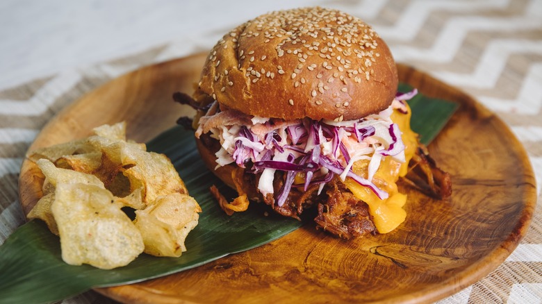 If you're a cheese lover, then there should be no need to convince you that basically everything is better with cheese. It's a culinary no-brainer. And if you're going to eat something as delicious as pulled pork, then you should go all the way with the decadence and cover it with some melting cheese. Cheese not only makes your sandwich gooier and richer, but it also adds even more umami, which is hard to say no to. Plus, it's an easy way to take your sandwich to the next level — there's no preparation needed other than slicing your cheese or unwrapping a package of the pre-sliced stuff.