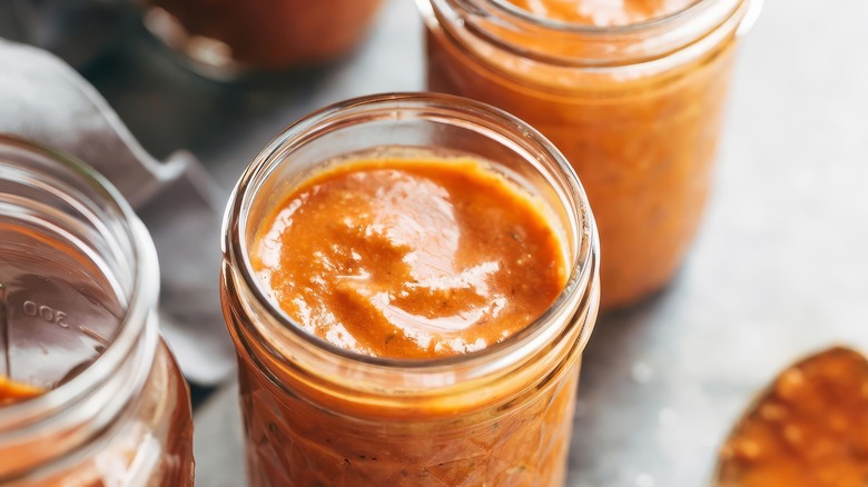 Packed with flavor, piri-piri sauce (also called peri-peri sauce) is usually made from a base of African bird's eye or Thai chiles, along with garlic, lemon, vinegar, paprika, oil, and other ingredients. While initially created as an incredible sauce for chicken, shrimp, and more, the heat from the chiles will add a mild spiciness to your pulled pork sandwich. Meanwhile, the other ingredients bring a lot of flavor and brightness — all of which make for a moreish bite. Not to mention, mopping any excess sauce up from your plate with your bread buns is also delicious.