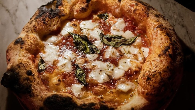At Una Pizza Napoletana, you can expect a Naples-style pizza, which Bobby Flay described as the type of pizza people might cut with a knife and fork in a March 2024 Instagram video. Furthermore, he went on to say that the establishment's owner, Anthony Mangieri, "makes probably the best Naples style pizza on this side of Naples."