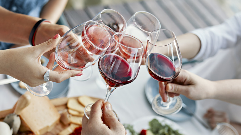 Because these red wine varieties are lighter, fruitier, and taste great chilled, they're the perfect beverage to serve at your next summer get-together. But how should they be served? The best way to drink chilled red wine is roughly between 50 and 55 degrees Fahrenheit, so you can leave the bottle in the fridge overnight and take it out an hour before serving, or let it sit in the fridge for 45 to 60 minutes. If you're in a pinch, chilling it in an ice bucket or the freezer for about ten minutes will get the job done, but be sure to test it periodically to ensure it isn't over-chilled.