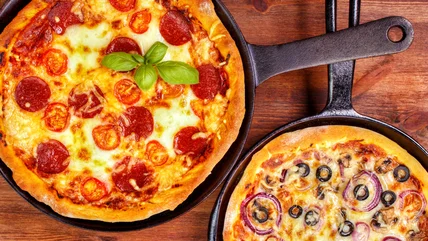 You can adapt most skillet pizza recipes for stovetop cooking, making it easy to enjoy a variety of flavors without needing to use your oven. For example, our Veggie Lovers Cast Iron Pizza is a great option for stovetop cooking. Instead of searing the bottom of the crust and then transferring it to the oven, follow these stovetop instructions: Start by preheating your skillet on high heat. Add a small amount of oil to prevent sticking, then place your dough in the skillet. Cook the first side until it's golden and crisp, which should only take about a minute — keep a close eye on it to avoid burning. Carefully flip the crust and lower the heat to medium. Quickly add your sauce, cheese, and toppings, then cover the skillet with a lid. Allow the pizza to cook for an additional four to five minutes, or until the cheese is melted and bubbly.