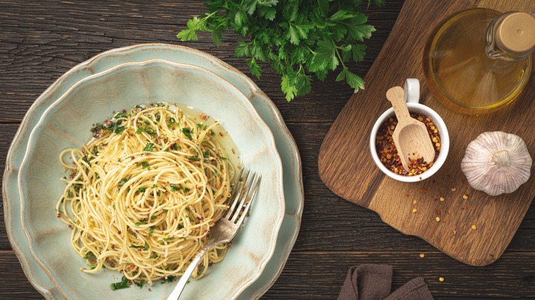 If you're like us, you're always looking for new ways to consume garlic. The allium is one of the most enriching, versatile ingredients out there, offering pungency in its raw form and buttery richness when cooked, meaning there is no shortage of fabulous incorporations and preparations. One often associates pasta dishes with garlic, but there's an upgrade that can offer your pasta the benefits of garlic in a decidedly atypical way. Next time you're cooking a batch, try adding garlic to your pasta water for more flavorful noodles.