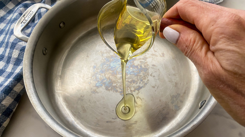 Step 3: Add oil to a pan