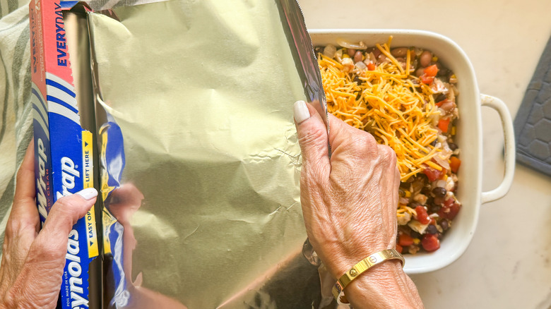 - Cover with foil and bake for 20 minutes.