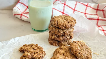 There are few things better than taking a bite into a chewy oatmeal cookie full of warm and wholesome flavors. This oatmeal cookie recipe, brought to us by developer and wellness coach Miriam Hahn, gets extra points for the ultimate chewy texture, all while being the perfect option for those embracing a vegan lifestyle, or those looking to cater towards plant-based friends. The secret to making this delicious treat chewy while keeping it vegan is the flax egg. The simple combination of ground flax seeds and water adds moisture and binding capability similar to an egg. The sweetness in this recipe comes from pure maple syrup, and coconut sugar to add a hint of caramelized flavor which pairs so well with the nutty oats.