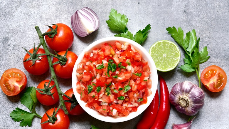 While adding salsa for more flavorful guacamole is always an option, the better pairing for the spicy, tomato dip is cottage cheese. The salsa has all the piquant, acidic, and bright notes that cottage cheese craves, while the creamy base offers a beautifully rich consistency. You can stick to equal parts of the two ingredients for this dip, but adding a more watery or chunkier salsa may mean that you'll have to play with the ratios to craft something perfectly dippable and flavorful.
