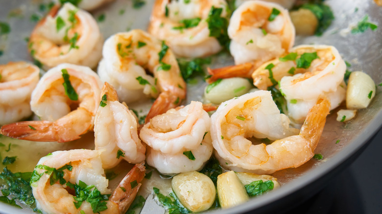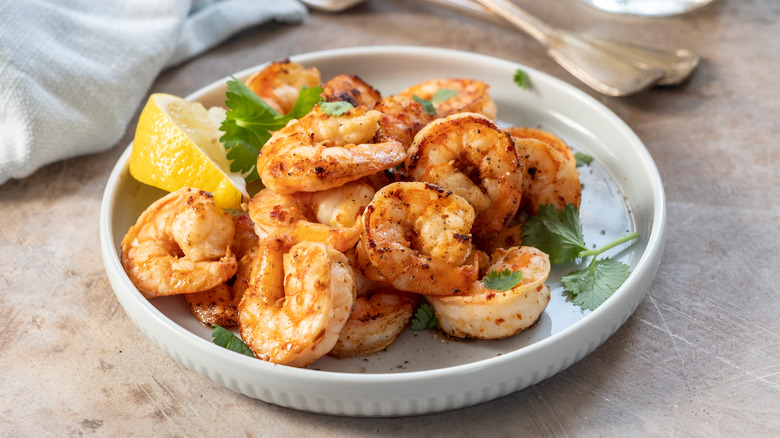 If you've ever ordered a classic shrimp cocktail before, you know that it's possible to serve shrimp with zero seasoning if you've got a spicy or tasty sauce to dunk them in. In all other cases, shrimp can be made infinitely better with the right seasonings. This applies to frozen cooked shrimp, which can easily absorb seasonings like it would a marinade. To bring the best out of your shrimp, a simple seasoning of salt and pepper is essential, but you can also add extra spices like paprika, cayenne pepper, cumin, celery salt, garlic powder, and much more, to make them extra zingy and tasty. Add your seasonings before you cook them so that they have some time to seep into the flesh.