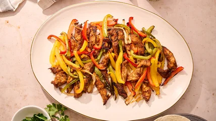 Sure, fajitas aren't necessarily difficult -– you can always pop the ingredients on a sheet tray to bake or saute them on the stovetop. Traditionally, though, fajitas are grilled over high heat and served sizzling on a hot cast-iron skillet, leading to a charred exterior and juicy, flavorful interior. This is better replicated using the air fryer, which circulates high heat around the contents and creates crispy outsides. In this recipe, developer Michelle McGlinn uses the air fryer to make sizzling chicken fajitas that are ready in 30 minutes or less, making dinnertime both easy and delicious.