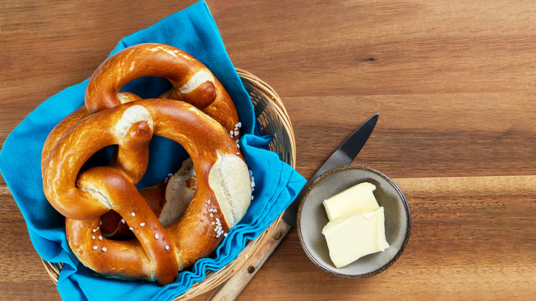 "Buttery" is certainly a word you associate with fresh, soft-baked pretzels. However, if you're vegan or follow a dairy-free diet, you'll have to leave out the butter component to create a pretzel that fits your dietary needs — or do you? Even without traditional butter, it's actually possible, and surprisingly easy, to create a delicious, buttery, soft-baked pretzel.