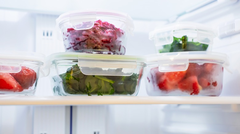 The frozen veggie bag trick works great for any pre-packaged item that comes in a plastic bag, ensuring that the food inside is as protected and compact as possible. For foods that don't come with packaging, like leftovers, try utilizing plastic bins to organize and stack foods efficiently. It's important to keep in mind that you shouldn't freeze foods in bulk and risk overcrowding the freezer, which slows down the freezing process detrimentally.