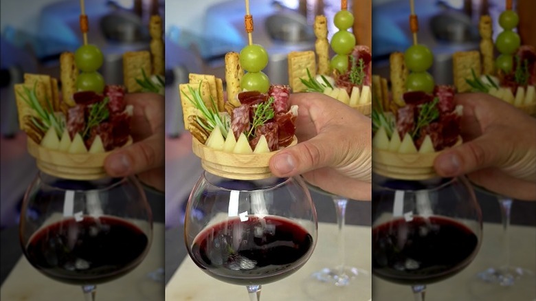 It's time to revisit the empty mason jars you ordered for canning projects during the pandemic. Your next charcuterie board-building efforts are in for a hosting upgrade, and canning jars are the perfect vessel to create cute containers for your guests. Both lids and jars can be creatively used to package and present underrated charcuterie ingredients. Whether you're arranging dessert foods or layering savory ingredients, the sturdy lids serve as convenient, portable canvases that can be placed neatly onto grazing tables, atop your guest's glasses and cups, or carried to this weekend's picnic in the park.