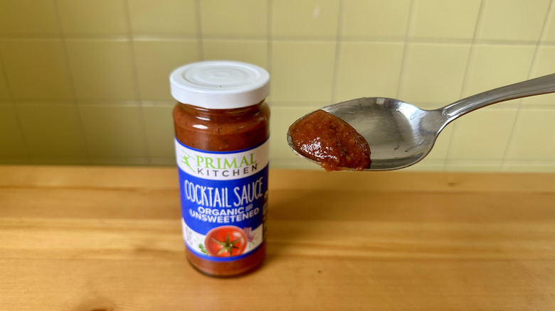 If you like that odd cinnamon flavor, though, you might like the Primal Kitchen cocktail sauce. Other than the addition of baking spices, the sweetness and acidity are nicely balanced here. It's worth noting this sauce has no added sugar. This cocktail sauce is also quite thick, which means it stands up well to the shrimp. There are certainly worse cocktail sauces you can choose from, but it's hard to level with that touch of unneeded cinnamon.