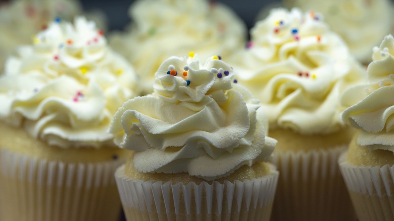 Powdered milk can be used for an array of frosting recipes. For starters, you don't have to stick to whipped cream — you can also infuse it into many other types of frosting. A classic vanilla buttercream, which goes perfectly on an array of different cakes and baked goods, majorly benefits from the flavor that skim milk powder offers. For maximum benefit, be sure to beat it well into the frosting, along with the sugar, to ensure that it's infused throughout. You can also make your cream cheese frosting easier to pipe by adding in milk powder; as with whipped cream frosting, it helps structure the frosting and makes its consistency ultra creamy.