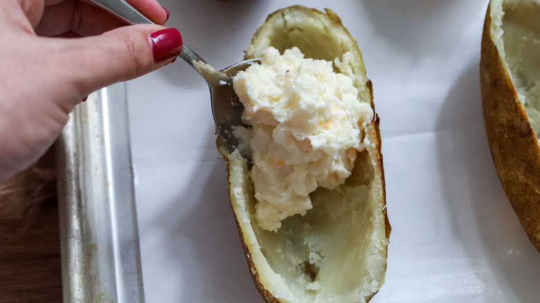 Step 13: Scoop the filling into the potato skins