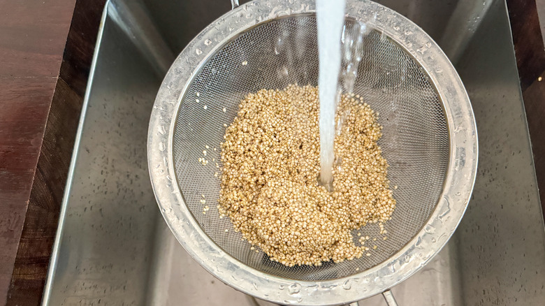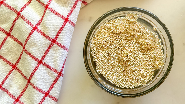 - Pour the quinoa into a bowl and cover with water. Soak for 1 hour.