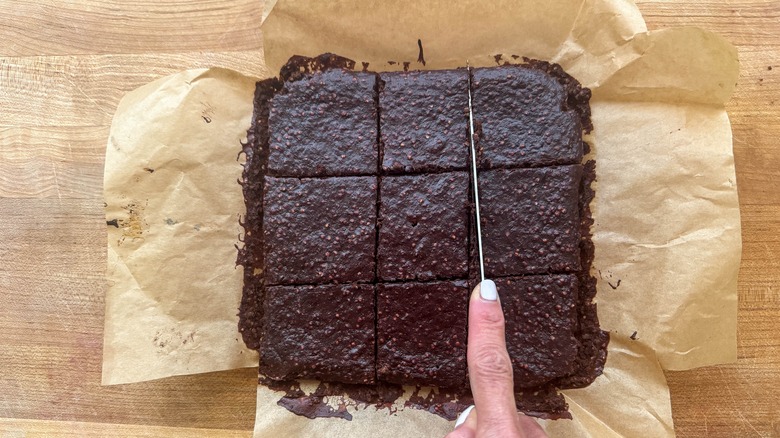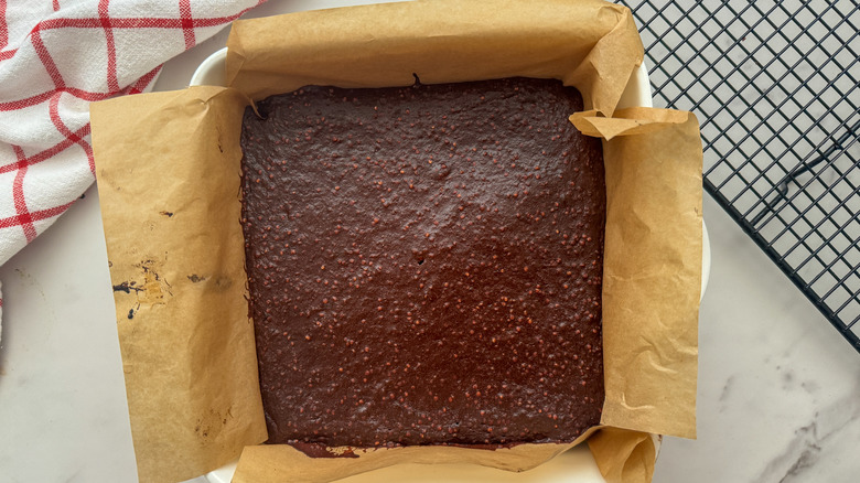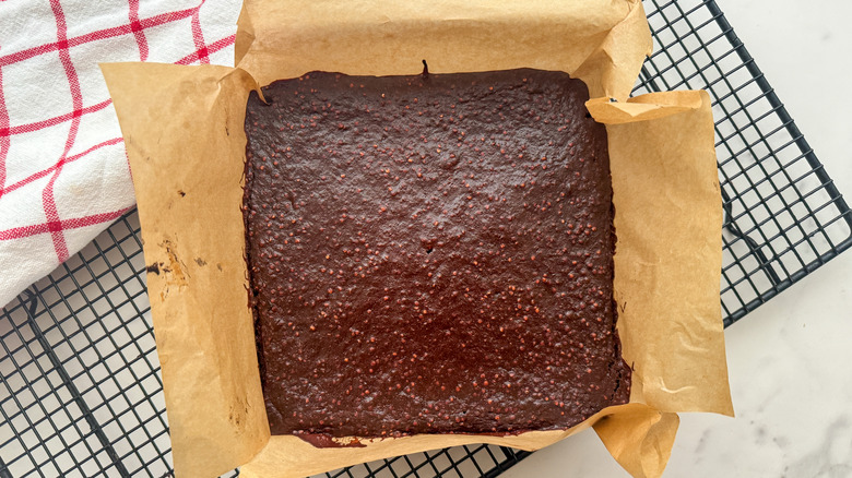 - Using the parchment paper as your handles, lift the brownies out of the pan and cool on a rack for 30 minutes.