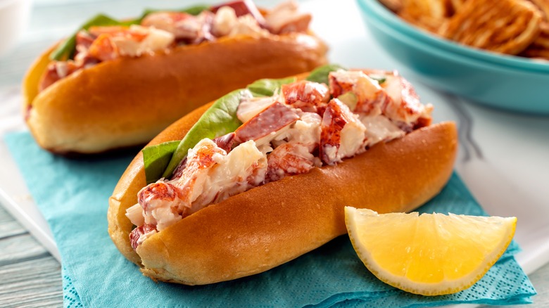 Beyond keeping those lobster chunks intact, there are a few more lobster cooking tips to ensure your roll is top-notch. First, you've got to choose a lobster. While there are various different types of lobster, the general consensus is that Maine lobster makes for the best chunks of meat for a hearty lobster roll. Maine lobster meat is tender rather than chewy, and it has a sweet yet briny flavor to it.