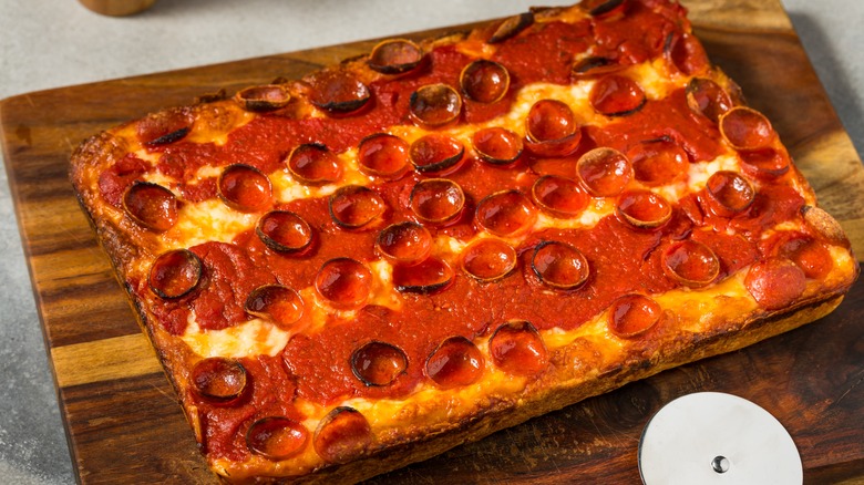 It seems that every corner of the U.S. has its own take on pizza. In Chicago, you'll find sky-high deep-dish slices stuffed with almost too much cheese (keyword: almost). New Yorkers prefer thin crust, while California pizzerias top pies with non-traditional garnishes like chicken, avocado, or even artichokes. There is one American-made pizza style, however, that Sicilians specifically would approve of — and it hails from none other than Detroit, Michigan.