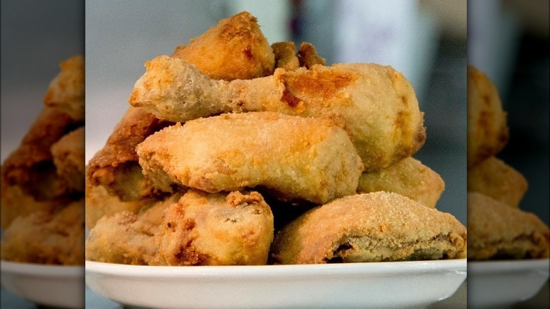 These traditional treats are made of spherical deep-fried dough balls generally piped with a sweet filling, like fruity jelly or custard, and topped with either powdered sugar or icing. Based on core build alone, they sound like your average, everyday American donut. However, they're known to be denser — and even more flavorful — than the sugary rings you typically find here in the U.S.