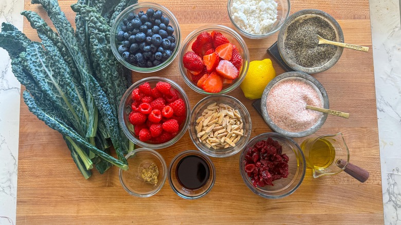 Gather the ingredients for kale and balsamic berry salad