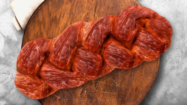 Braiding your steak before cooking it can also turn a tougher cut of meat into a fall-apart tender crossover between a steak and a roast. Long, flat cuts get a particular boost when braided. The long muscle fibers in the meat can make skirt and flank steaks tough and chewy; they're usually cooked hot and fast and served thinly sliced across the grain, breaking the fibers into short, chewable morsels that are perfect for stir fry, fajitas, and tacos. But braided steak takes advantage of those tricky muscle fibers, which hold together when sliced and twisted. You still slice the steak after cooking, but instead of thin strips, you end up with a meaty slab that's more like a roast with a tasty, charred crust and a medium-rare center (or whatever doneness you prefer). It's a big, budget-friendly upgrade that requires very little effort.