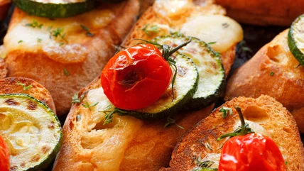 Since zucchini is a Swiss-army-knife type of produce, there are many ways to upgrade, customize, and develop zucchini bruschetta. If you're craving a touch of rich, buttery pungency, try making grilled garlic and spreading the cooked cloves over your bruschetta baguette before piling on the sautéed zucchini. You can also try giving the bread a crisp touch courtesy of a broiled parmesan coating; the sharp fruity nuttiness of the cheese will complement the vegetable's natural sweetness.