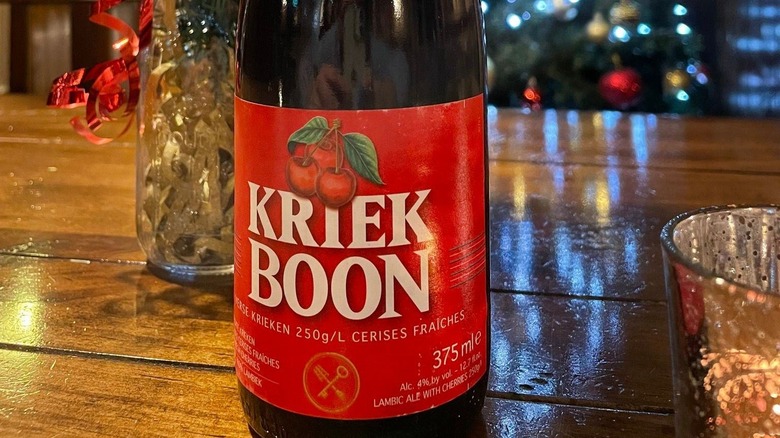 Kriek Boon's recipe features no less than a whopping 250 grams of real cherries per liter of beer, giving it a stunning ruby-red hue and a massively fruity profile. It's light and balanced with a nice complexity, thanks to the fact it's made by combining both young and aged lambic beer. It also has great natural carbonation, thanks to a process called secondary fermentation. This is a technique that's also used in champagne production, when the beer continues to ferment after bottling as the yeast keeps munching on residual sugars.