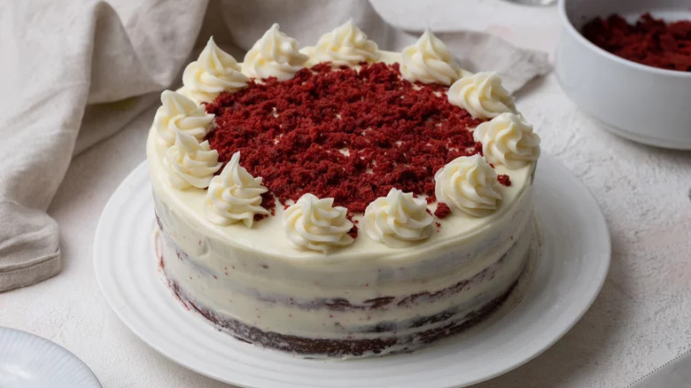 Sometimes, a classic red velvet cake is the way to go. After all, no other cake has the bright pop of color that a red velvet cake does. Our version, developed by Jennine Rye, has everything that you want from a red velvet cake, such as the signature cream cheese frosting and a crumbling of cake pieces on top for extra decoration (and enjoyment). The steps for this cake are pretty simple — plus, you get to have fun with food coloring to achieve the iconic red hue.