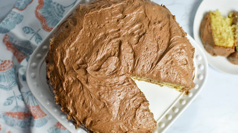 Sometimes all you want is a simple, no-fuss cake — just like this classic yellow cake with chocolate frosting developed by Stephanie Rapone. She says, "My family loves it, and it is simple to make with ingredients I always have around." Like Rapone mentions, this cake calls for kitchen staples that you're likely already stocked up on, such as flour, butter, and eggs. You may need to run out to the market for the frosting ingredients, which includes chocolate chips, espresso powder, and sour cream, but it will be worth it. Rapone says, "The frosting can't be beat — it's not overly sweet, but it's still super chocolatey." Once finished, she suggests serving with a tall, cold glass of milk.