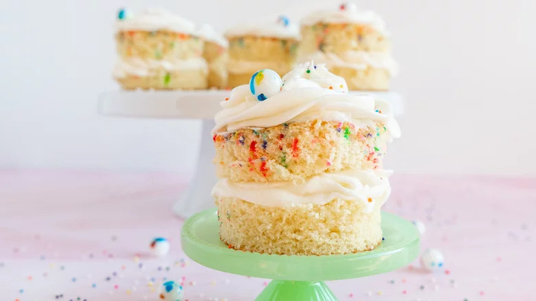 What if, instead of a whole birthday cake, you made a batch of mini cakes? These desserts, developed by Molly Allen, are a mix between a traditional cake and a cupcake — and each one has the perfect ratio of frosting to cake.